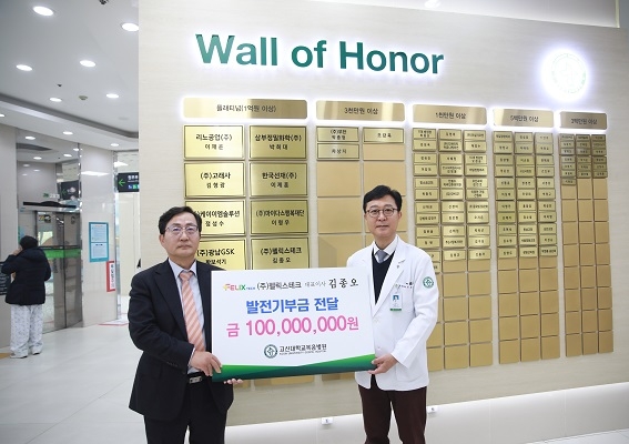 고신대복음병원은 김종오 펠릭스테크 부회장이 지난 17일 고신대병원을 직접 방문해 최종순 병원장에게 기부금을 전달했다고 18일 밝혔다.