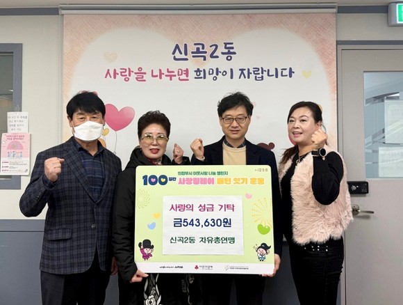 이상현 동장은 “매년 이웃돕기 성금을 기탁해 주시는 신곡2동 자유총연맹 회원분들께 감사드리며, 전해주신 성금은 도움의 손길이 필요한 곳에 소중히 전달하겠다”고 말했다.