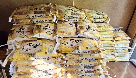 "어려운 이웃과 따뜻한 정을 나누고 싶다"며 익명의 기부자가 19일 인제군 남면 행정복지센터에 10kg들이 햅쌀 150포대를 기탁해 훈훈함을 전하고 있다.