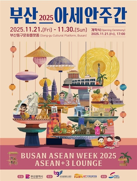 부산시는 21일부터 오는 30일까지 열흘간 동구 문화플랫폼(도시철도 부산진역 8번 출구)에서 ‘2025 부산-아세안 주간’을 개최한다고 밝혔다. 시민과 아세안 외교 사절단, 유학생, 아세안 진출 기업 등이 한자리에 모이는 국제 문화교류 행사로, 2019년 한-아세안 특별정상회의 이후 매년 부산의 시민외교를 대표하는 플랫폼으로 자리매김해 왔다.