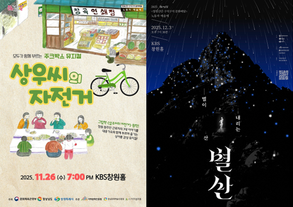 두 공연 모두 무료로 전 연령 관람 가능하다. '상우씨의 자전거'는 오는 24일 오후 5시까지 네이버로, '별이 내리는 산, 별산'은 이벤터스로 내달 3일 낮 12시까지 사전 예매하면 된다.