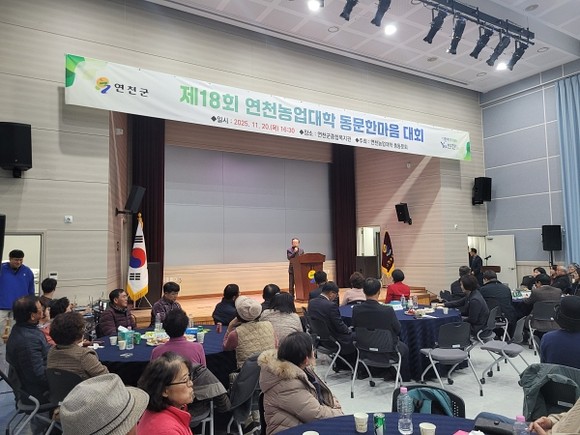 연천군은 연천군종합복지관에서 '제18회 연천농업대학 동문한마음대회'를 열었다. 재학생과 졸업생, 내빈 등 200여 명이 참석해 지역 농업의 흐름을 공유하고 교류를 이어갔다. 연천군은 이번 행사를 지역 농업 발전을 위한 소통 자리로 꾸렸다.