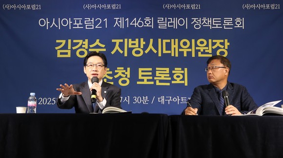 (CNB뉴스=신규성 기자) 김경수 대통령 직속 지방시대위원장은 25일 대구 남구 대구아트파크에서 열린 아시아포럼21 제146회 초청토론회에서 “수도권 집중 문제는 더 이상 방치할 수 없는 국가적 위기”라며 “지역균형발전 정책의 성패는 결국 대통령의 관심과 의지에 달려 있다”고 강조했다.