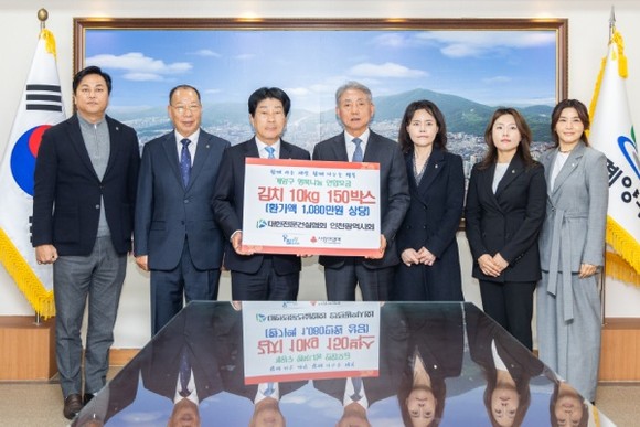 인천광역시 계양구는 지난 24일, 대한전문건설협회 인천광역시회가 취약계층의 겨울철 식생활 지원을 위해 김치(10kg) 150박스(환가액 1,080만 원 상당)를 기탁했다고 밝혔다.