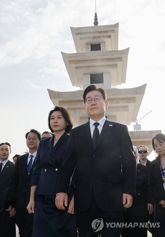 튀르키예를 국빈 방문한 이재명 대통령은 25일(현지 시간) 부인 김혜경 여사와 함께 한국전 참전 기념탑에 참배했다.