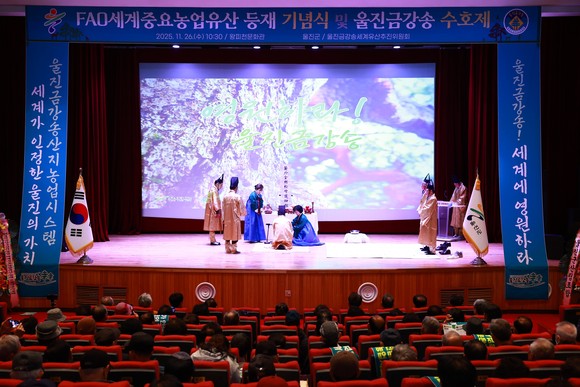 (CNB뉴스=손윤호 기자) 경북 울진군은 세계가 인정한 울진 금강송의 가치를 군민과 함께 공유하고 보전 의지를 다지기 위해 개최한 ‘울진금강송산지농업시스템’ FAO 세계중요농업유산(GIAHS) 등재 기념식 및 제15회 울진금강송 수호제를 26일 근남면 왕피천공원 문화관에서 성황리에 마무리했다.