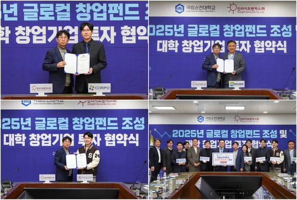 국립순천대학교(총장 이병운)는 지난 25일 ‘글로컬 창업펀드 100억’조성 기념 협약식을 개최하고, 펀드 운영사인 ㈜인라이트벤처스와 함께 대학 기반 유망 창업기업 3개사와 투자의향서(LOI)를 체결했다고 밝혔다.