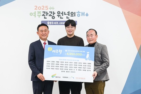 ㈜산바다스포츠와 치재사회적협동조합은 지난 2일, (재)여주시인재육성장학회(이사장 윤은호, 명예이사장 이충우)에 장학금 495만 원을 기탁했다.