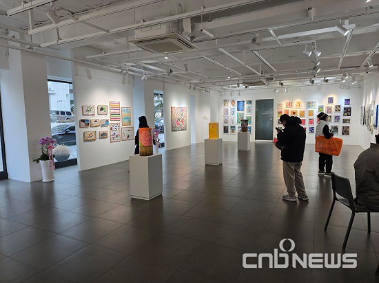 입구에 들어서자 하얀 배경으로 구성된 벽면 공간을 따라 100여 점이 넘는 그림이 펼쳐졌다. 벚꽃이 핀 풍경을 묘사한 유화부터 색의 농도를 자유롭게 표현한 아크릴화까지, 작가들의 개성이 담긴 다양한 회화 작품이 설치돼 있었다.