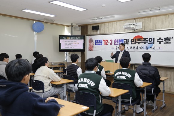 이날 특강은 시교육청에서 지정한 ‘헌법과 민주주의 수호기간’을 맞아 기획됐다. 특히 ‘헌법과 민주주의 수호’를 주제로 학생들이 최근 헌정 위기 상황을 바르게 인식하고 헌법의 가치를 되새길 수 있도록 돕기 위해 마련됐다.