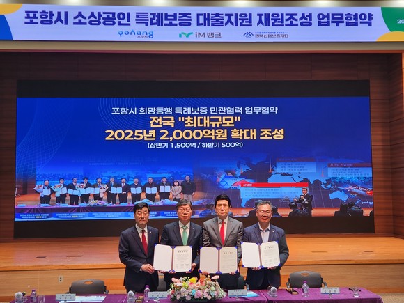 특히 지자체와 금융회사가 1대 1로 출연하는 ‘매칭출연’ 제도를 전국에서 처음으로 도입해 포항시 특례보증 규모를 전년 대비 7배 가까이 확대했고, 이 모델을 기반으로 2025년에는 10개 시군으로 이를 확산시키며 출연금 총액을 3년 만에 493억 → 701억 → 1,000억 원으로 끌어올렸다.