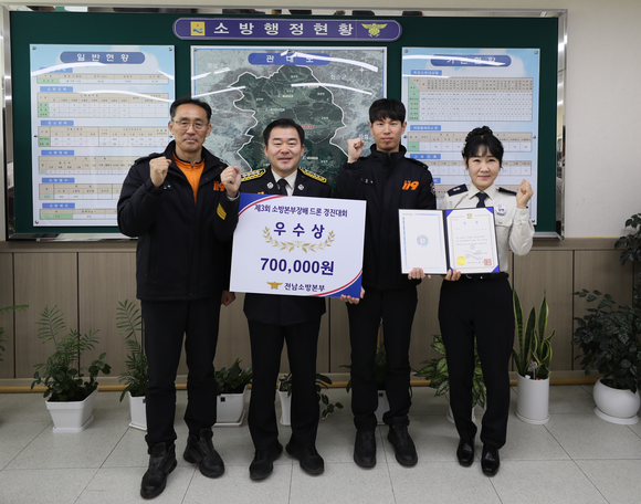 특히 재난 현장 투입을 가정한 조종 안정성, 다중 임무 수행능력, 장애물 회피 및 신속 탐색 과제에서 고른 성적을 거두며 전남 소방드론 운용역량 향상에 기여한 점을 인정받아 우수상이라는 영예를 안았다.