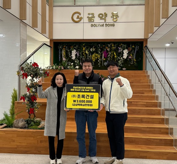 광양시는 지난 12월 8일 ㈜초록건설(대표 손병완)이 ‘전남드래곤즈와 함께하는 희망 Shoot! 나눔 Goal!’ 기부챌린지를 통해 모인 적립금 360만 원을 골약동지역사회보장협의체(공공위원장 박순옥, 민간위원장 정용태)에 기탁했다고 밝혔다.