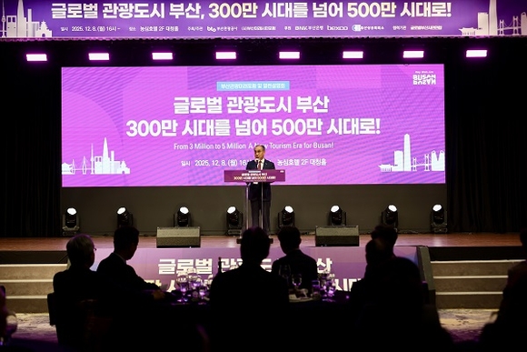 부산관광공사는 지난 8일 농심호텔 대청홀에서 ‘글로벌 관광도시 부산, 300만 시대를 넘어 500만 시대로!’ 기념행사를 열었다. 부산 개항 이래 처음으로 외국인 관광객 300만 명을 돌파한 성과를 시민·학계·관광업계와 함께 기념하고, 2028년 500만 명 시대를 향한 비전을 공유하기 위한 자리다.