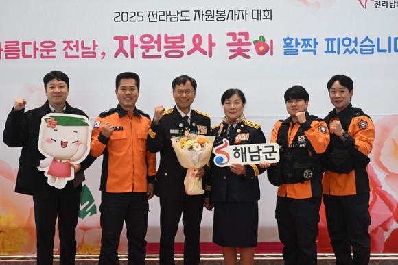 해남소방서(서장 박춘천)가 지난 10일 전남도청 김대중강당에서 열린 전라남도 자원봉사센터 주관 행사에서 2025년 전라남도 시군 자원봉사 우수기관 현판을 수여받았다.