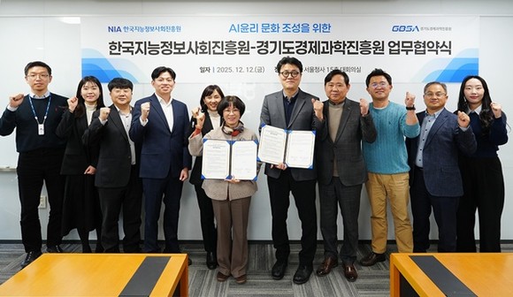 경기도경제과학진흥원이 12일, 한국지능정보사회진흥원과 AI·디지털 윤리 역량 강화 및 책임 있는 기술 활용 문화를 확산하기 위한 업무협약(MOU)을 체결했다고 밝혔다.