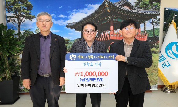 인제읍재향군인회(회장 전선길)는 지난 12일 군청을 방문해 최상기 군수에게 지역 인재 육성을 위한 장학금 100만원을 기탁했다.