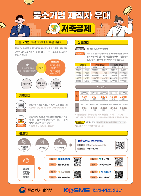 강석진 중진공 이사장은 “이번 취급은행 확대와 3년형 상품 도입, 가입 절차 개선은 모두 재직자와 기업의 이용 편의를 높이기 위한 조치였다”며 “앞으로도 제도의 실효성을 지속적으로 강화해 중소기업 재직자의 자산 형성과 장기근속은 물론, 중소기업의 안정적인 인력 확보에도 도움이 되는 제도로 발전시켜 나가겠다”고 밝혔다.