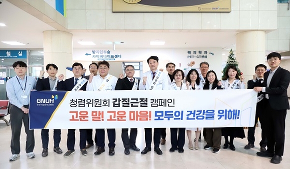 경상국립대학교병원은 지난 12일 병원 청렴위원회가 주관해 ‘고운 말! 고운 마음! 모두의 건강을 위해!’라는 슬로건 아래 청렴 주간 행사를 펼쳤다고 15일 밝혔다.