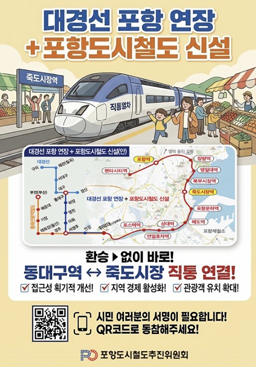 위원회 관계자는 “시민 서명운동을 통해 포항도시철도 건설과 대경선 연장 도심 직결에 대한 여론을 집약하고, 이를 바탕으로 관계 기관에 공식 정책 요구를 전달하겠다”고 말했다.