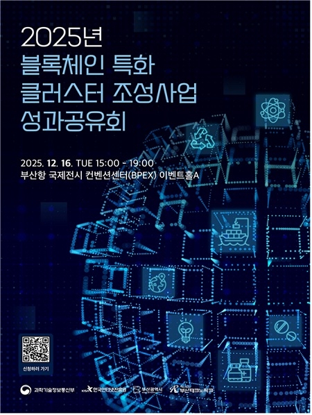 부산시는 16일 부산항국제전시컨벤션센터에서 '2025년 블록체인 특화 클러스터 조성 사업 성과공유회'를 개최한다. 이번 행사는 블록체인 특화 클러스터 조성 사업의 분야별 주요 성과를 공유하고, 블록체인 기술의 산업적 적용 가능성을 점검하는 한편 지속 가능한 발전 방향을 모색하기 위해 마련됐다.