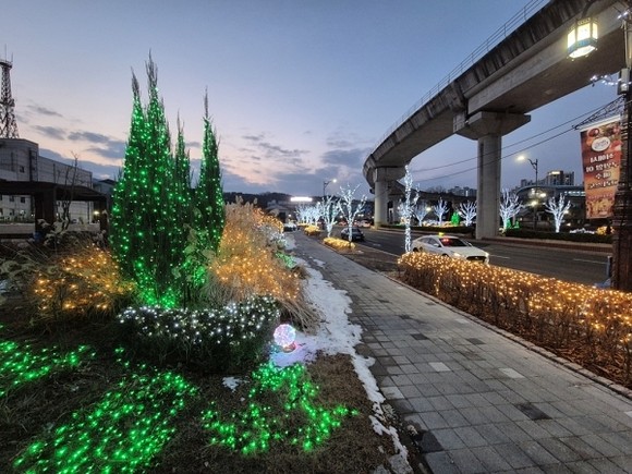 시청 앞 아름다운 산책 별빛로는 ‘위로의 낭만’을 담았다. 내년 2월까지 운영한다. 시청 앞 가로수에 조명을 설치해 겨울철 야간 보행 공간에 볼거리를 더한다는 설명이다.
