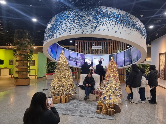 특히 나비곤충생태관의 특색을 살린 나비 모양의 크리스마스 장식이 공간 곳곳에 배치돼 일반적인 겨울 연출과 차별화된 볼거리를 선사한다. 금색·은색, 분홍빛, 푸른빛 나비 장식이 트리와 조화를 이루며 겨울 포토존으로 주목받고 있다.