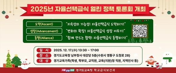 이승준 도교육청 학교급식보건과장은 “자율선택급식은 학생과 학부모의 신뢰 속에서 꾸준히 성장해 온 경기교육의 핵심 정책”이라며 “올해 논의된 방향과 현장의 의견을 토대로 통합지원 체계를 강화해 경기도가 미래학교급식을 선도할 수 있도록 노력하겠다”고 말했다.