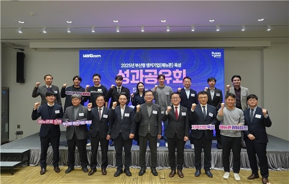 부산시는 지난 17일 오전 동래구 호텔농심에서 '2025 부산형 앵커기업 육성 지원사업 성과보고회'를 개최했다고 밝혔다. ‘부산형 앵커기업 육성 지원사업’, 일명 ‘매뉴콘 프로젝트’는 제조(Manufacture)와 유니콘(Unicorn)의 합성어로, 지역 경제를 지탱해 온 전통 제조기업이 첨단 제조기업으로 전환해 한 단계 도약하는 ‘퀀텀점프’ 성장을 지원하는 부산형 제조업 육성 사업이다.