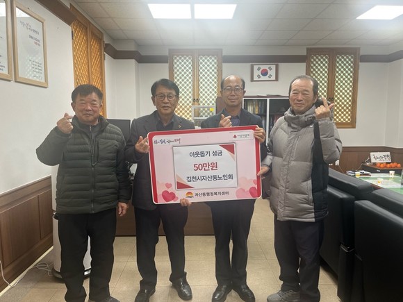 대한노인회 김천시지회 자산동분회(분회장 최상동)는 지난 17일 자산동 행정복지센터를 방문해 지역 내 어려운 이웃을 돕기 위한 희망2026나눔캠페인 성금 50만 원을 기부했다.
