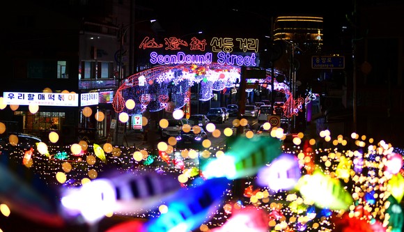 선등거리에는 지난 1년 간 화천지역 어르신들이 손수 제작한 형형색색의 산천어등과 LED 조명 수만여 개가 설치됐다.
