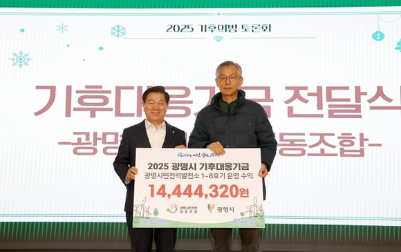 이번 기부는 광명시와 광명시민전력협동조합이 체결한 ‘시민참여형 재생에너지 보급·확대 및 기후대응기금 조성을 위한 업무협약’에 따른 것으로, 조합은 오는 2041년까지 광명시민전력발전소 1~8호기 운영 수익 일부를 매년 기후대응기금으로 기부할 예정이다.