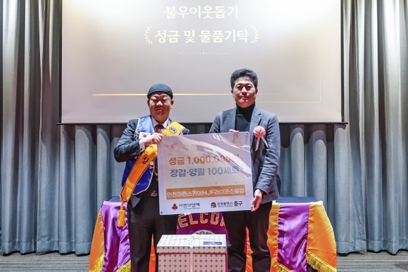 인천시 중구는 ‘인천마린스카이MJF라이온스클럽’이 연말연시를 맞아 지역 내 어려운 이웃을 돕기 위해 성금 100만 원과 방한용품(수면 양말, 장갑) 100세트를 기탁했다고 밝혔다.