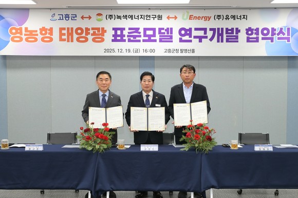 협약에 따라 ▲고흥군은 실증단지 부지 제공과 배전선로 설치 등 행정 지원을 총괄하고 ▲주관기관인 ㈜유에너지는 설비 설계 및 시공과 기술관리를 담당하며 ▲(재)녹색에너지연구원은 작물 생육환경 검토와 데이터 검증 등 기술 자문을 수행하게 된다.