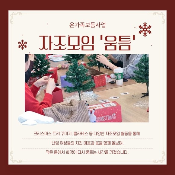 인천동구가족센터는 난임 여성의 심리적 부담을 줄이기 위해 온가족보듬사업 자조모임 ‘움틈’을 운영했다고 밝혔다.