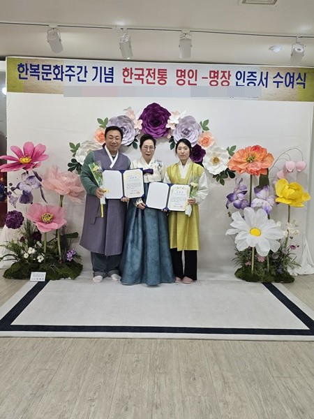 또한, 이번 행사에서는 한복주간 기념 한국전통 명인-명장 인증서 수여식도 개최되어 각 부문별 선정자로 남미옥(전통머리), 강석문(직조-염색), 명인 김수영 수원약과, 전태순(전통한복), 공미양(매 듭), 홍경애 (칠보공예), 방경애 (전통머리) 등이 선정되는 영예를 안았다.