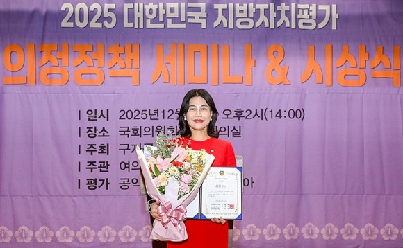 의정부시의회 운영위원장 김현채 의원(국민의힘/비례대표)이 여의도정책연구원이 주관한 ‘2025 지방자치평가 의정정책대상’에서 우수상을 받았다. 시상식은 국회의원회관 대회의실에서 열렸다.
