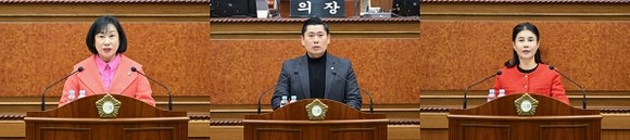 권안나 의원은 기부 문화 활성화 방향을, 김현채 의원은 축제를 관광산업으로 키우기 위한 정책 구조 전환을, 김지호 의원은 청과야채시장 일원 공동주택 개발 추진 과정에서의 교통혼란 우려와 교통대책 재검토 필요성을 각각 제기했다.