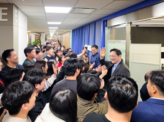 이재용 삼성전자 회장이 22일 삼성전자 화성캠퍼스를 방문해 임직원들과 인사를 나누고 있다. (사진=삼성전자)