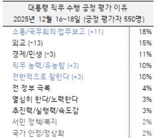 지난주 금요일(19일) 발표된 한국갤럽 여론조사에서도 대통령에 대한 긍정 평가자들이 최고로 꼽은 요인이 ‘소통과 국무회의 생중계’였으니 ‘생중계 탓 지지율 하락’은 현실과 괴리된 진단임을 더욱 확실하게 알 수 있습니다.