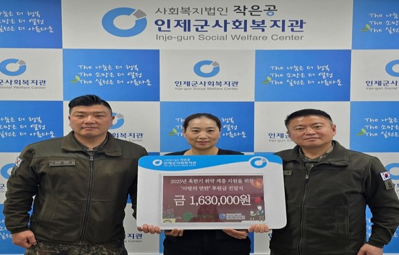 인제 제103정보통신단 그린봉사회(회장 백종판)는 23일 인제군사회복지관을 방문해 지역내 주거취약계층의 혹한기 대비를 위해 써달라며 사랑의 연탄 나눔 후원금 163만원을 전달했다.