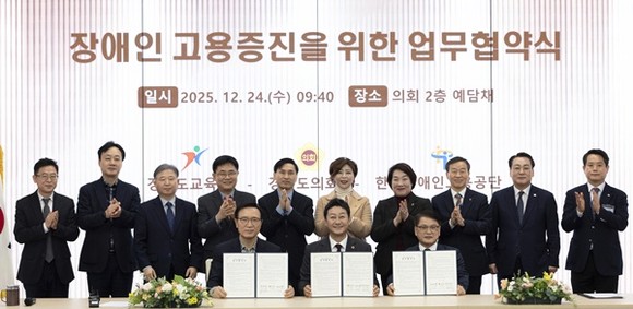 경기도교육청이 24일, 경기도의회 예담채에서 경기도의회, 한국장애인고용공단과 함께 장애인 고용증진을 위한 업무협약을 체결했다.