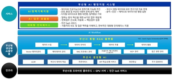부산형 인공지능 행정서비스는 전국 최초로 소형 언어모델(sLLM)과 내부 행정자료를 결합한 검색증강생성(RAG) 기반의 생성형 인공지능 행정서비스를 구축한 것이 특징이다. 특정 행정 업무에 최적화된 언어모델을 활용해 상대적으로 적은 자원으로도 안정적이고 통제 가능한 운영 환경을 마련했으며, 외부 상용 생성형 인공지능에 의존하지 않고 내부 데이터를 중심으로 인공지능을 운용함으로써 정보 보호와 데이터 통제 체계를 강화했다. 시는 이 구조를 공공부문 전반으로 확산 가능한 표준모델로 발전시켜 나갈 방침이다.