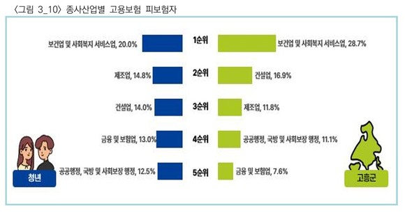 일자리 관련 통계 결과를 보면, ‘2024년 하반기 기준 청년 고용률은 81%로 나타났으며, 주요 종사산업은 보건 및 사회복지서비스업이 20%로 가장 높았다. 이어 제조업(14.8%), 건설업(14%) 순으로 분석됐다.