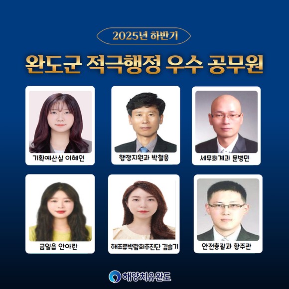 완도군은 지난 24일 적극행정위원회를 개최하고 ‘2025년도 하반기 적극 행정 우수 공무원’ 4명과 협업팀 2팀을 선정했다.