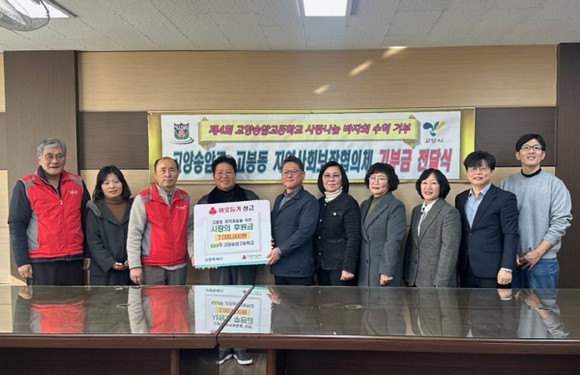 전달식은 이날 학교장실에서 진행됐으며, 학생들과 정재도 고양송암고 교장, 차형수 고봉동장, 이종억 지역사회보장협의체 위원장 등이 참석해 뜻을 모았다.