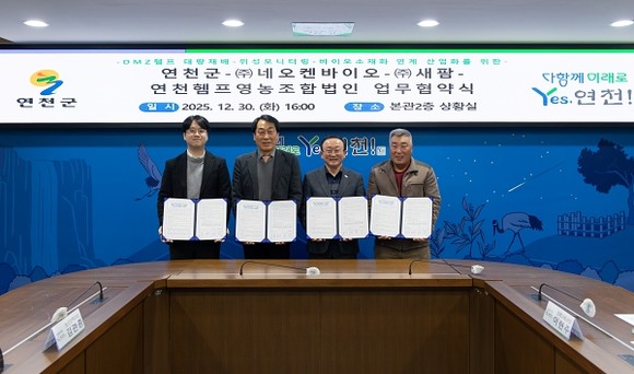 연천군이 DMZ 일대 헴프(대마) 산업을 체계적으로 키우기 위해 민간기업·생산조직과 손잡았다. 연천군은 지난 30일, 군청 본관 2층 상황실에서 네오켄바이오, 새팜, 연천헴프영농조합과 업무협약을 체결하고, 헴프 대량재배부터 생육 모니터링, 수매·바이오소재화, 산업화까지 전 주기를 잇는 협력체계를 구축하기로 했다.