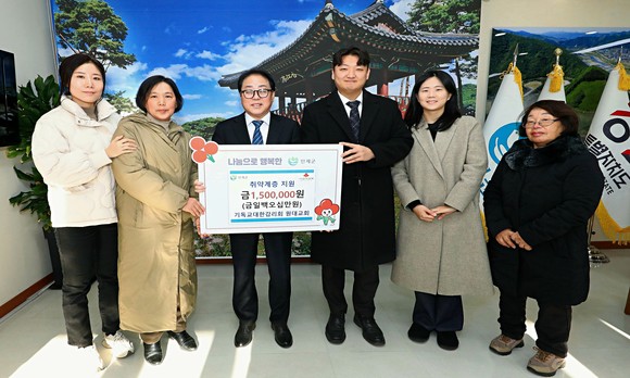 인제 원대교회(목사 배승식)는 지난해 12월31일 인제군청을 방문해 어려운 이웃을 위해 써달라며 이웃돕기 성금 150만원을 최상기 군수에게 기탁했다.