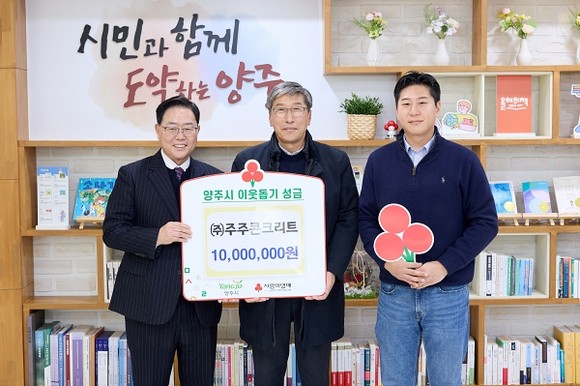 양주시는 지난 2일, 시장실에서 주주콘크리트로부터 이웃돕기 성금 1,000만 원을 기탁받았다.