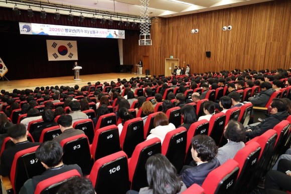 인천시 남동구는 지난 2일, 구청 대강당에서 구민과 직원 500여 명이 참석한 가운데 2026년 시무식을 열고 새해의 힘찬 출발을 알렸다. 이번 시무식에서는 유공 구민과 공무원 등에 대한 표창 수여가 진행됐다.